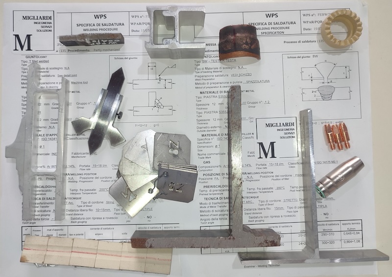 Organizzazione esami pratici presso azienda per patentini di saldatura UNI EN ISO 9606-1/2 acciaio al carbonio/alluminio, con ispettore di ente sotto Accredia